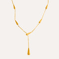 Minimalist and radiant, the Golden Drop Necklace features a sleek waterdrop-shaped pendant cast in stainless steel and finished with 18K gold PVD plating. Its smooth, polished surface reflects light with graceful brilliance, making it a versatile piece that complements both casual and refined styles. Waterproof, tarnish-resistant, and hypoallergenic, it’s designed to remain a timeless staple in any jewelry collection.