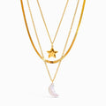 Elegant and symbolic, the Moon Pearl Star Necklace features a graceful moon-inspired design adorned with a natural freshwater pearl and a delicate star (pentagram) accent. Crafted from premium stainless steel and finished with 18K gold colour plating, this necklace blends celestial charm with timeless sophistication. Waterproof, hypoallergenic, and lightweight, it’s a refined piece designed for everyday elegance and meaningful gifting.